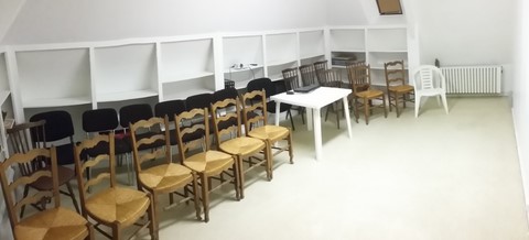 Loin des blablatoriums… A l’abordage de la rénovation d’une future nouvelle salle (la 7ème) du musée Artcolle. Merci aux adhérents de l’association qui ont précocement renouvelé leurs adhésions, celles-ci ont été investi dans l’enduit, la peinture, les rouleaux, etc. Le rez-de-chaussée et le 1er étage étant à présent comme un sou neuf avec ces 6 salles luxuriantes, il était temps d’attaquer les travaux au second étage : une façon comme une autre pour que l’art du collage prenne de la hauteur :