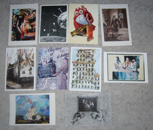10 cartes postales différentes d'artistes collagistes.